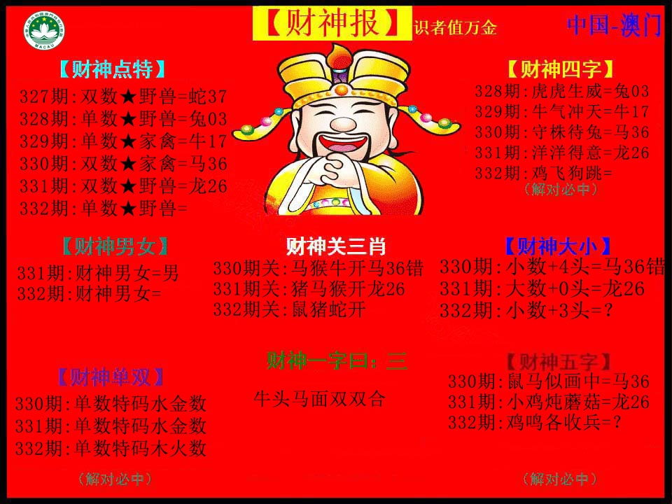 332期:六肖特围---牛蛇羊龙鼠猴---开:?00 |