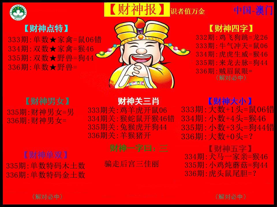 334期:六肖特围---牛猪狗猴虎蛇---开:猴46 |