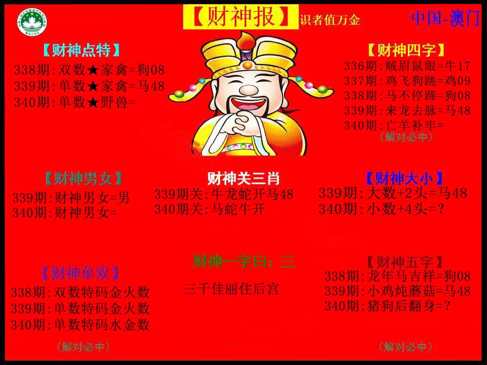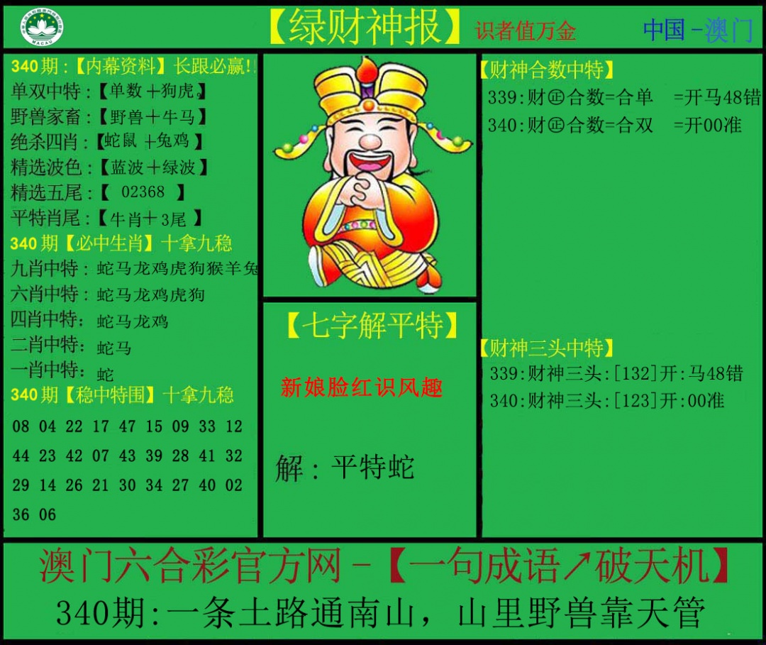 340期:六肖特围---蛇猴牛狗马鸡---开:?00